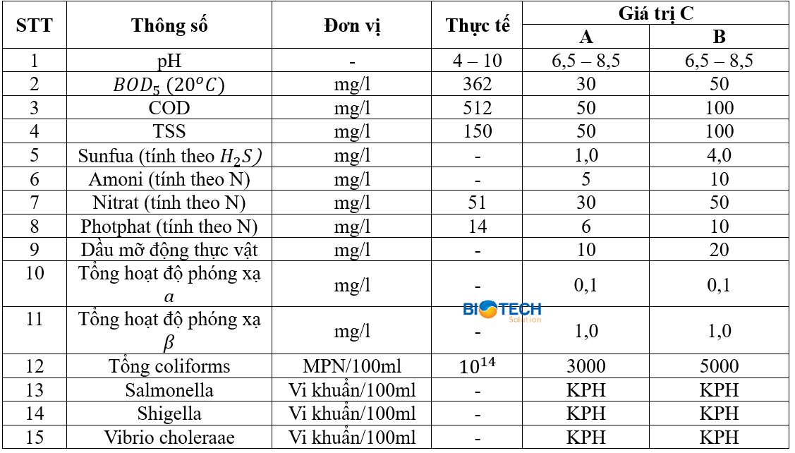 b. Tính chất nước thải