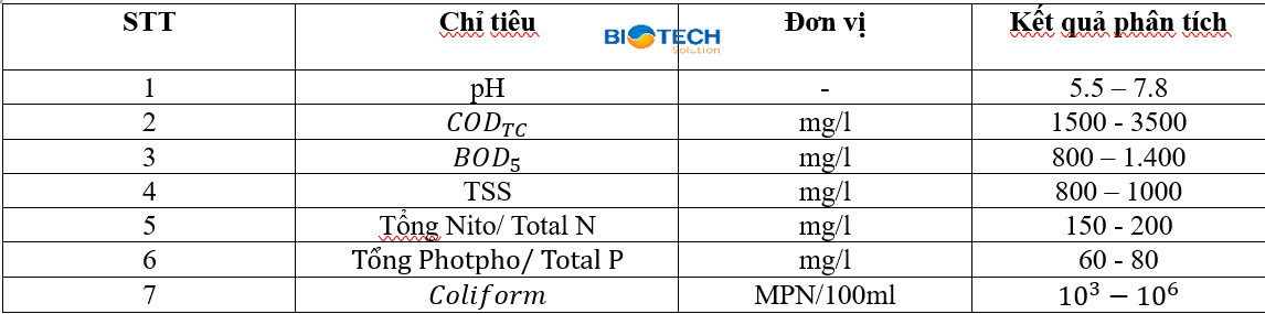 + Hàm lượng N và P: Hàm lượng N-tổng = 400–600 mg / l, P-tổng = 40 - 60 mg / l. Vì nuôi dưỡng thức ăn chứa nhiều chất N và P nên phân tán và nước tiểu sẽ có nồng độ N và P cao.