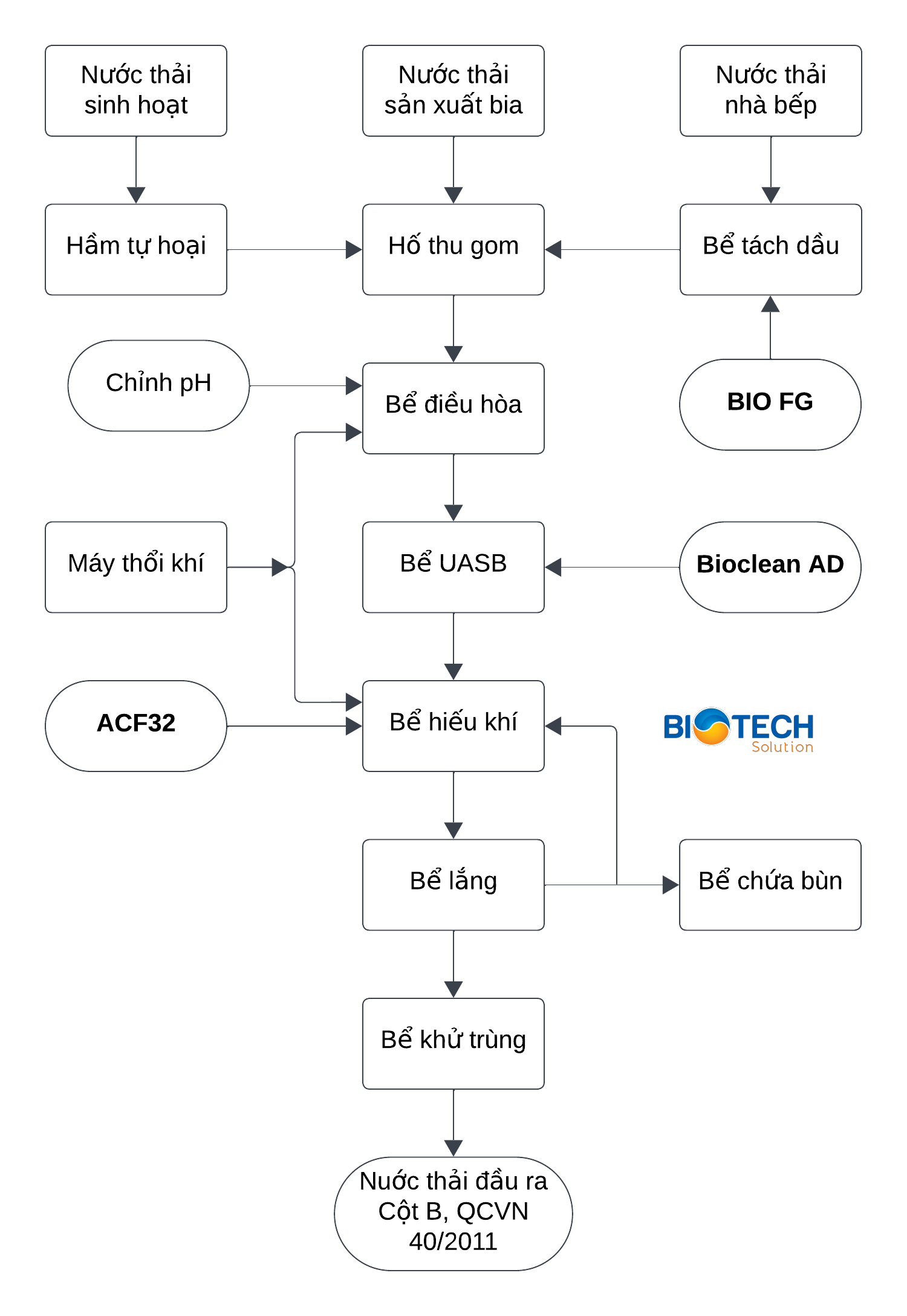 Hình 2: Quy trình công nghệ xử lý nước thải sản xuất bia